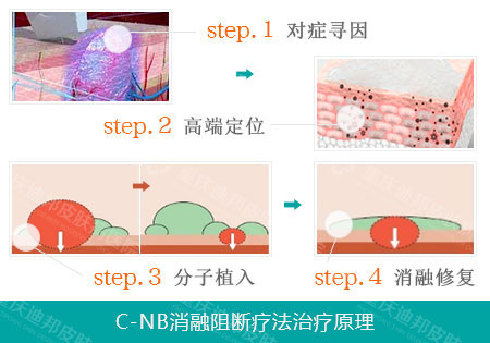 2、诊疗全面、强效阻断:C-NB消融阻断疗法结合595nm波长,穿透深、疗效好,系统分析病变组织生物结构,避免误诊、漏诊;转基因生物高分子植入,全面阻断血管病生长媒介和所需因素;